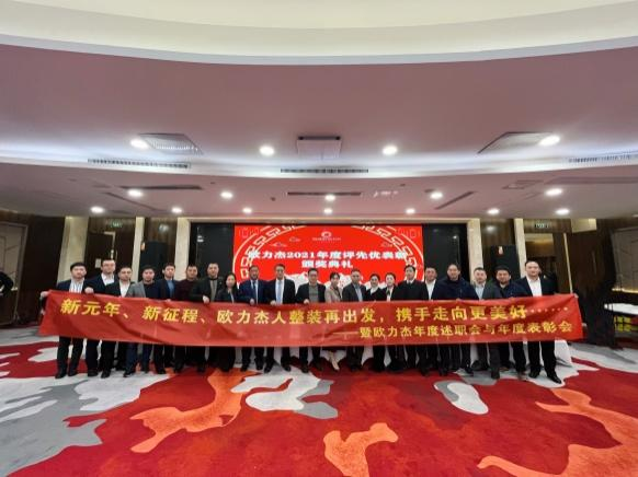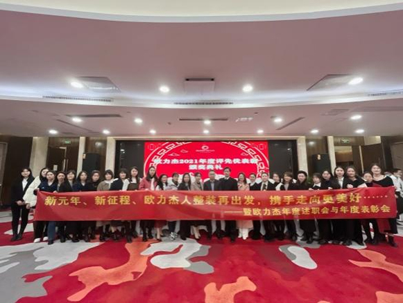 虎躍龍騰升紫氣,風(fēng)調(diào)雨順兆豐年!告別難忘的辛丑年迎來(lái)全新的壬寅年。值此新春之際,為回顧、復(fù)盤、分享歐力杰2021年的奮斗路,展望、計(jì)劃、行動(dòng)歐力杰2022年的新征程,2022年1月27日,歐力杰全體年度述職與表彰大會(huì),于合肥古井假日酒店隆重舉行!總經(jīng)理陳總、副總經(jīng)理許總攜公司各部門負(fù)責(zé)人以及歐力杰全體家人出席本次年會(huì)。