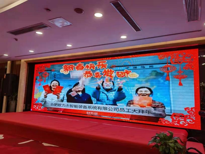 年會(huì)上來(lái)自各部門、各項(xiàng)目代表拍攝剪輯的團(tuán)隊(duì)新春祝福視頻滾動(dòng)播放,現(xiàn)場(chǎng)氣氛溫暖,無(wú)不洋溢著歐力杰全體家人的喜悅與幸福。