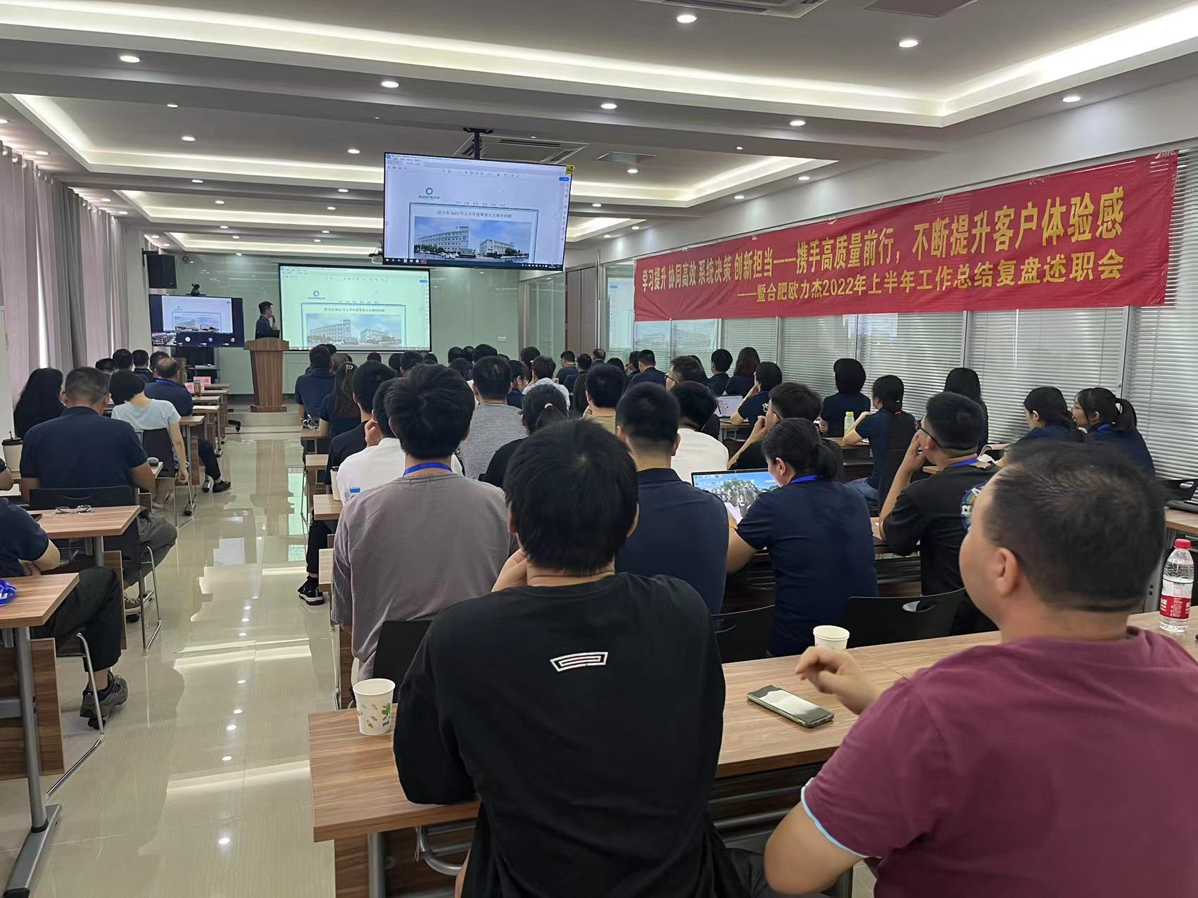 2022年7月30日,合肥歐力杰智能裝備有限公司2022年上半年度經(jīng)營(yíng)工作復(fù)盤會(huì)于高新辦公區(qū)四樓多功能廳順利召開(kāi)。本次復(fù)盤會(huì)采取線上、線下兩種形式開(kāi)展,出席本次公司級(jí)復(fù)盤會(huì)議的有:合肥歐力杰智能裝備系統(tǒng)有限公司總經(jīng)理陳總、副總經(jīng)理許總、各部門負(fù)責(zé)人以及各部門員工代表。